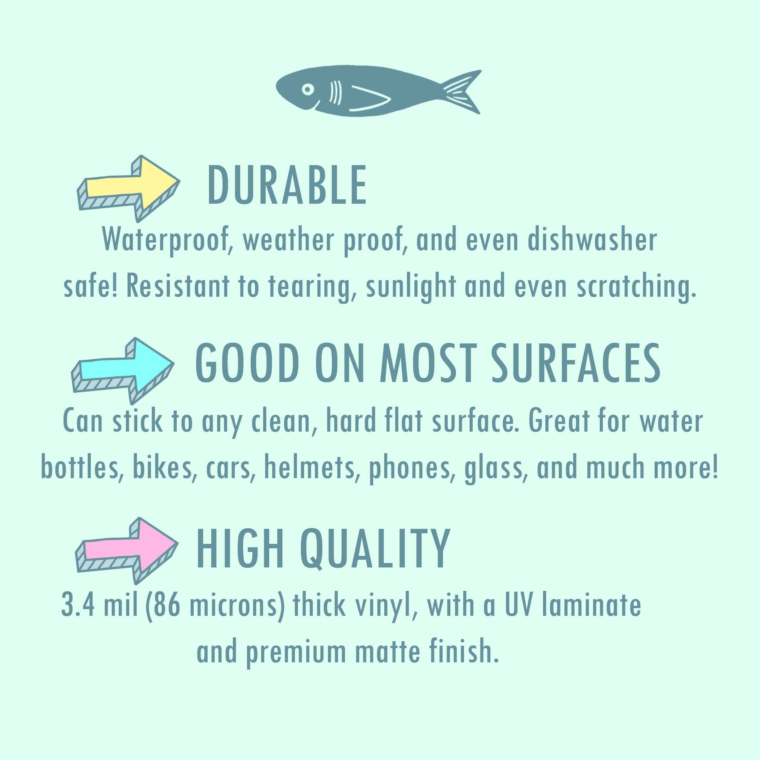 Printed on water-resistant, thick, durable vinyl with a UV laminate. Weatherproof, waterproof, and scratch-resistant. Dishwasher safe.
